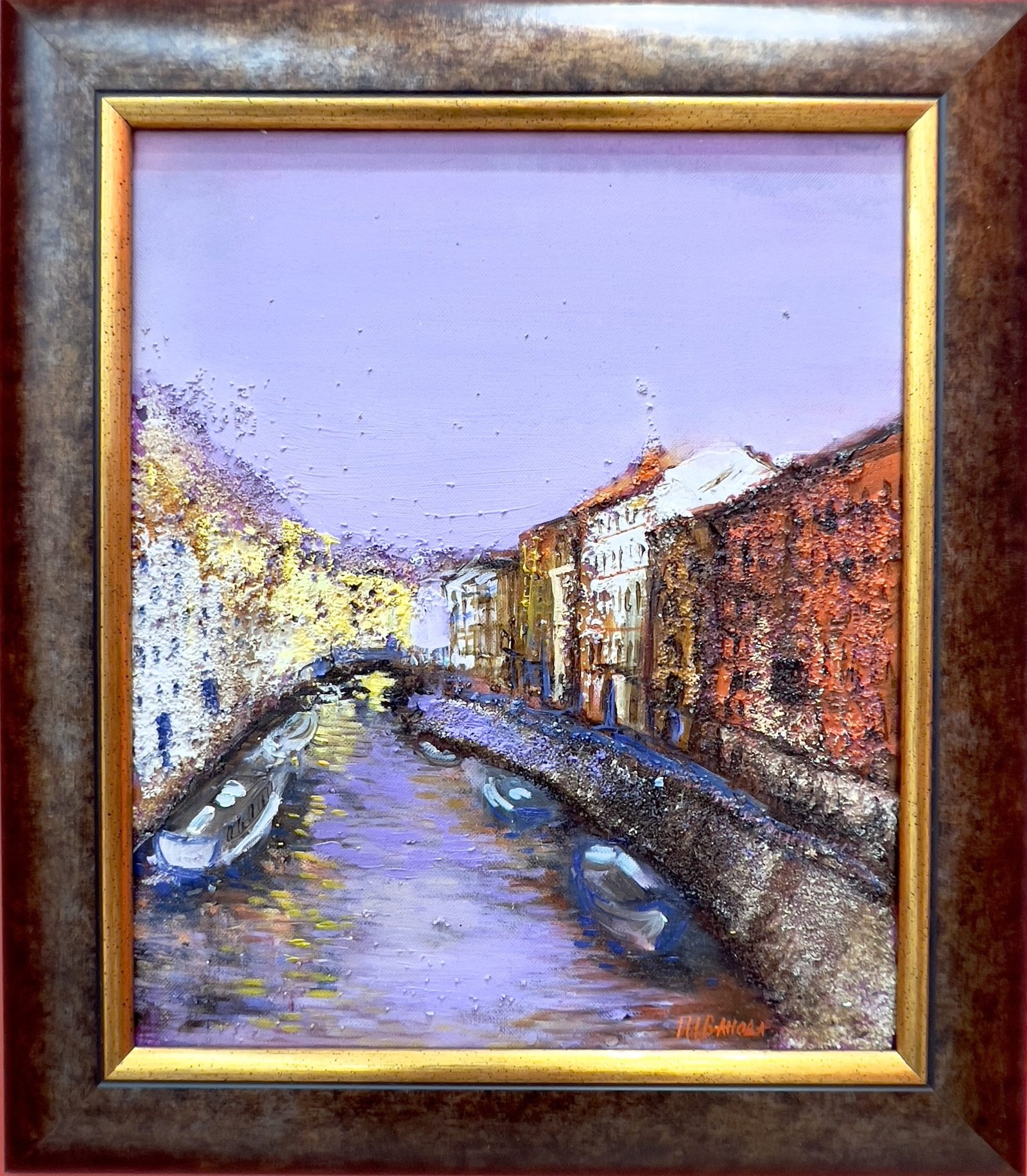 Платно, смесена техника с включена рамка в цената.
